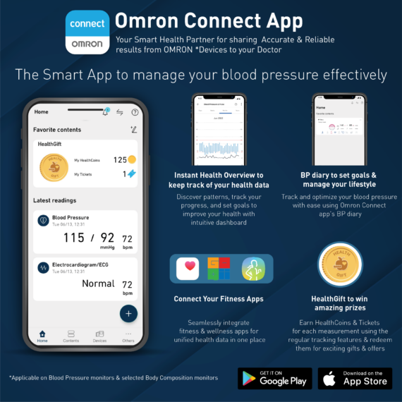 | Connectivity | Bluetooth® (OMRON Connect App) |